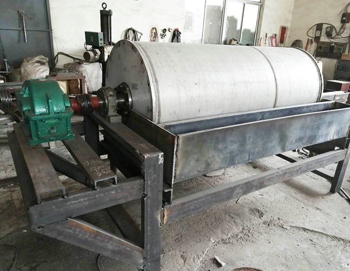 永磁滚筒亦称为磁滑轮或干式大块磁选机。其内部采用高性能硬磁材料组成复合磁系,具有磁场强度高、深度大、结构简单、使用方便、不需维修、不消耗电力、常年使用不退磁等特点。主要用于水泥、磁选、矿山、钢铁、化工、耐火材料、垃圾处理等行业的选铁。与DT-75型、AD-80型通用固定式皮带输送机配套使用代替主动轮。也可与专用皮带输送机配套。